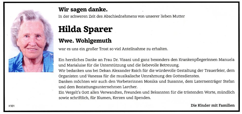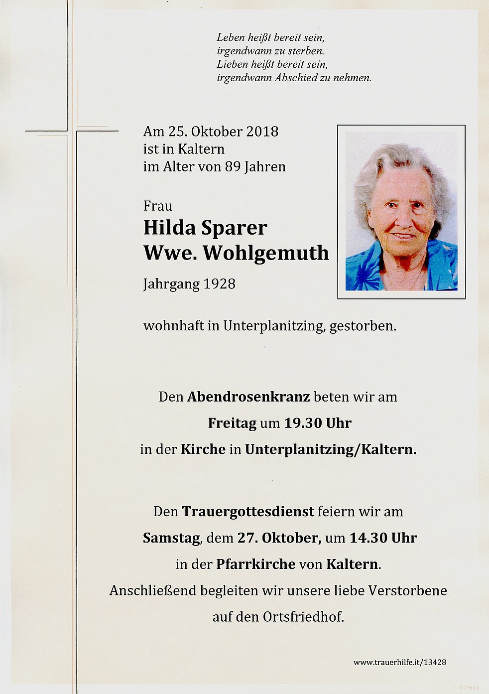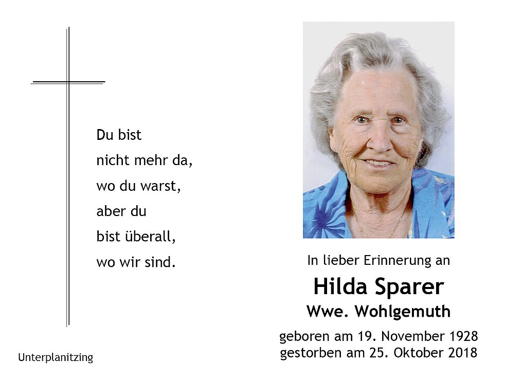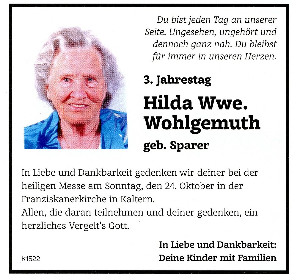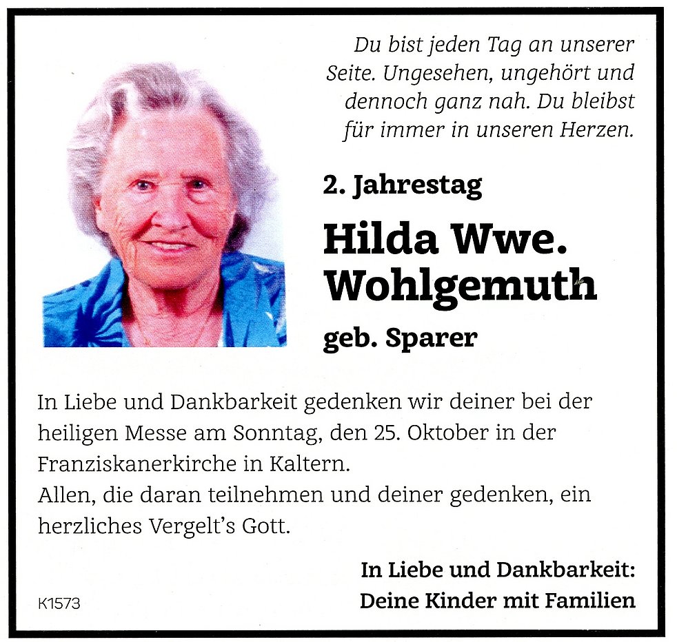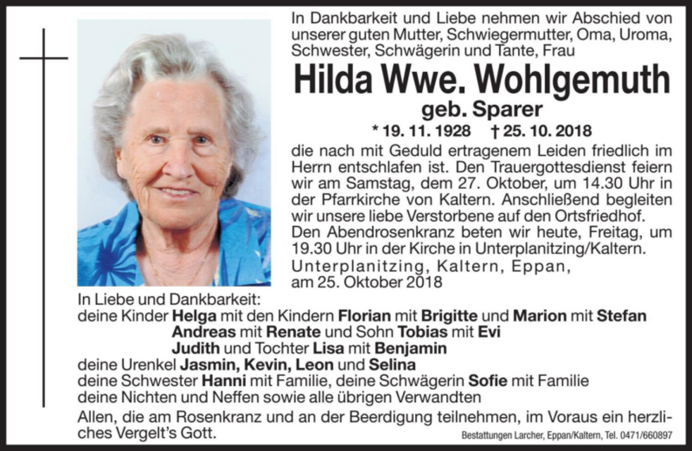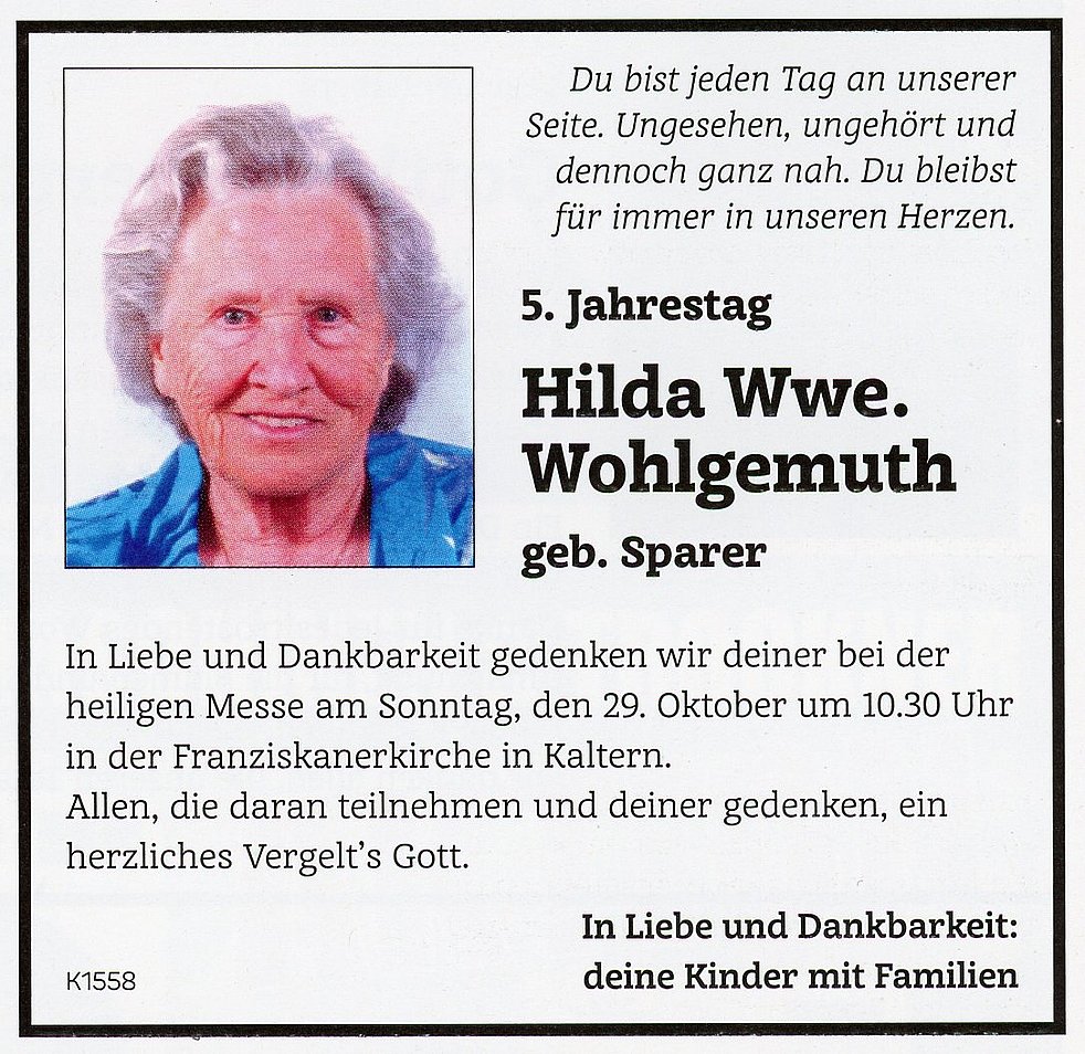 Hilda Wwe. Wohlgemuth geb. Sparer