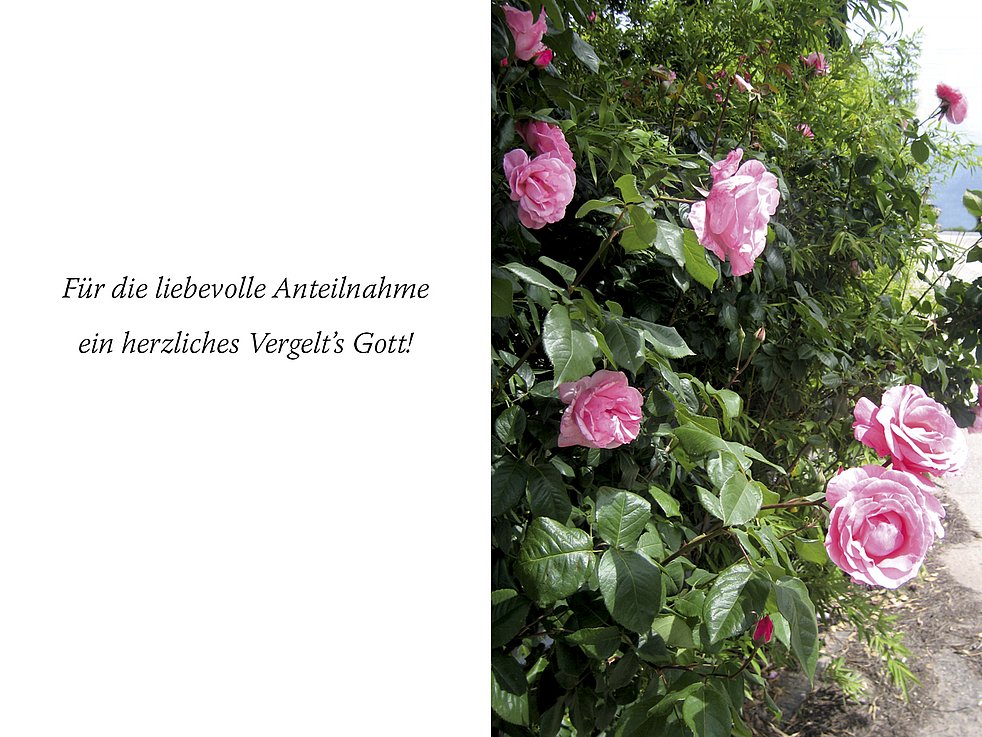 Allen, die am Rosenkranz und an der Beerdigung teilnehmen, im Voraus ein herzliches Vergelt´s Gott.