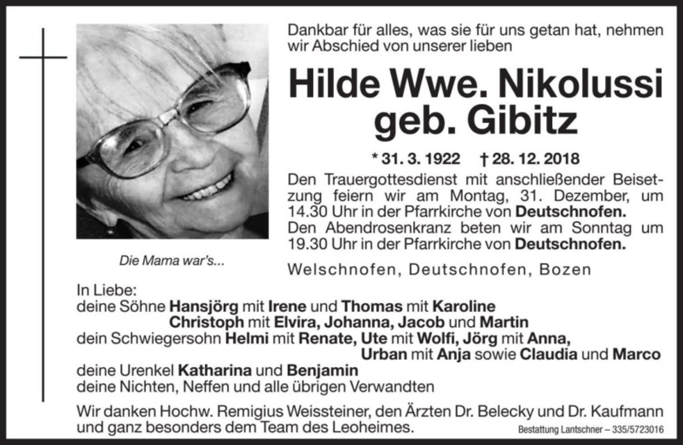 Hilde Wwe. Nikolussi