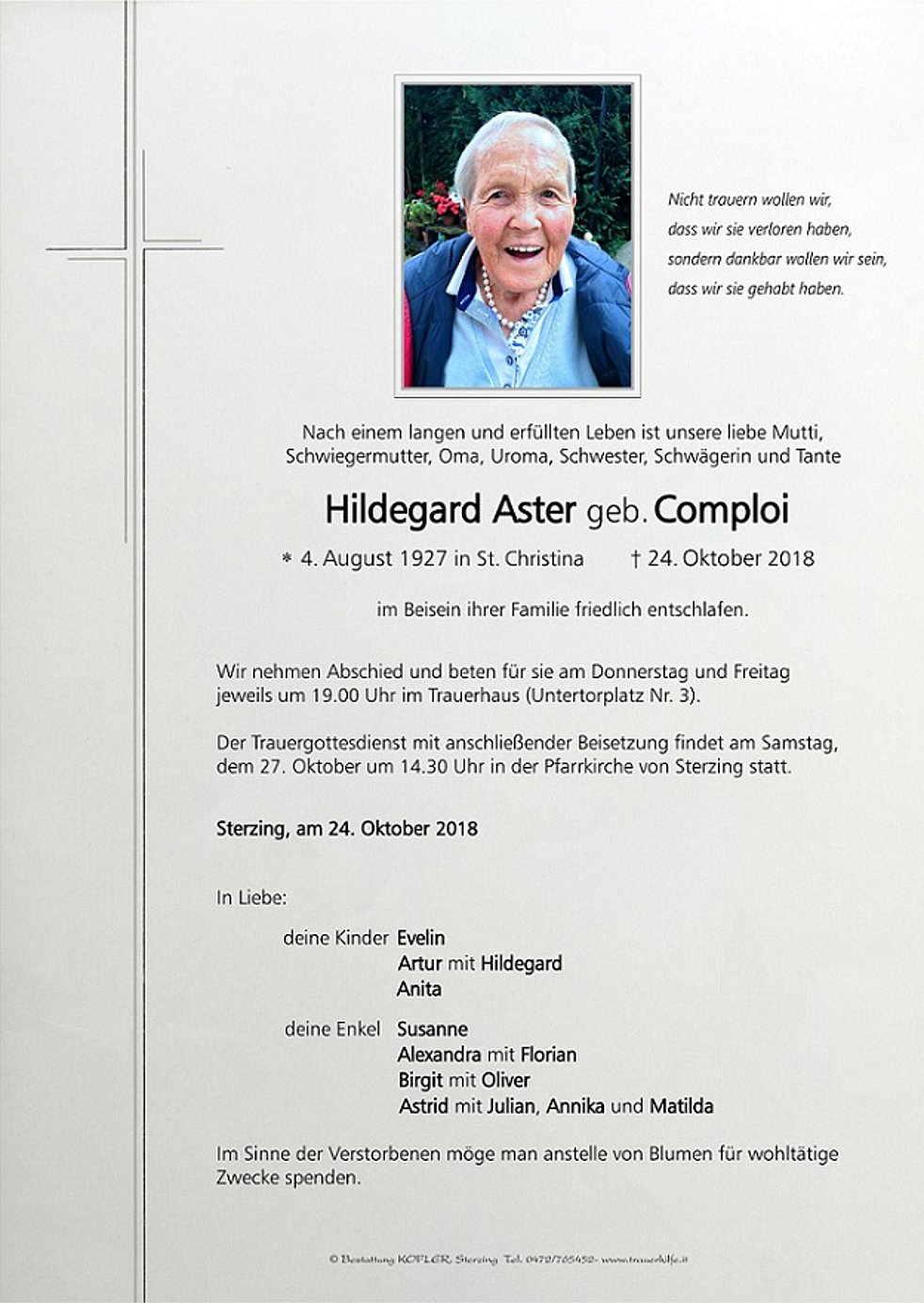 * 4. August 1927 in St. Christina † 24. Oktober 2018