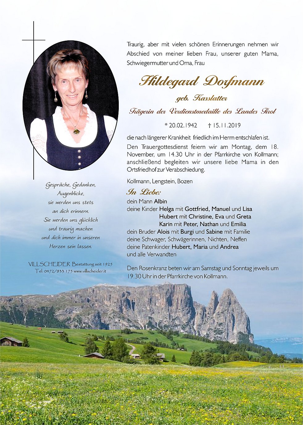 Trauerfeier: 18.11. - 14:30 Uhr Kollmann