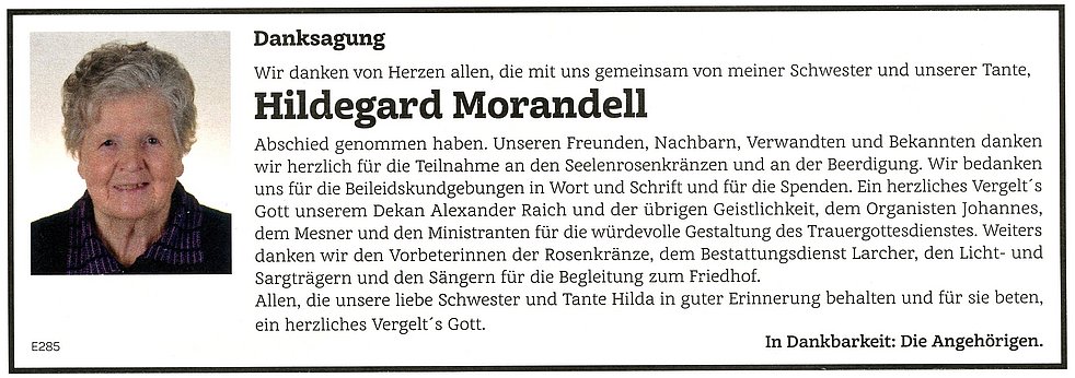 Allen, die an den Rosenkränzen und an der Beerdigung teilnehmen, im Voraus ein herzliches Vergelt´s Gott.