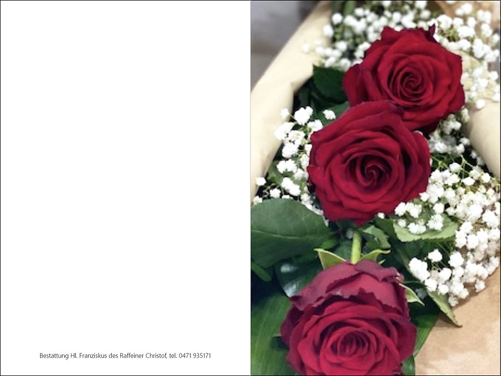 Den Trauergottesdienst feiern wir am Dienstag, dem 3. Mai um 9.45 Uhr in der Pfarrkirche Maria in der Au am Don-Bosco-Platz. Anschließend, um 11 Uhr begleiten wir unsere liebe Verstorbene zur Beisetzung im Familiengrab auf den Friedhof von Bozen-Oberau.