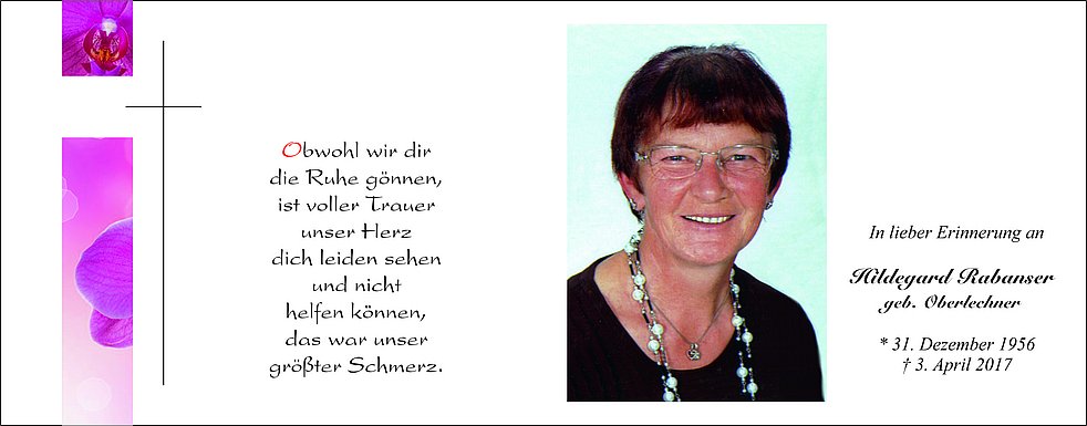 Wir begleiten unsere liebe Mama am Freitag, den 7. April,