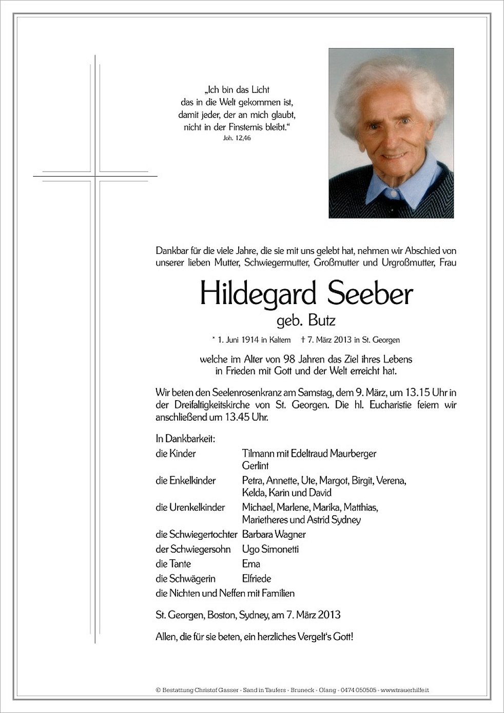 * 1. Juni 1914 in Kaltern † 7. März 2013 in St. Georgen