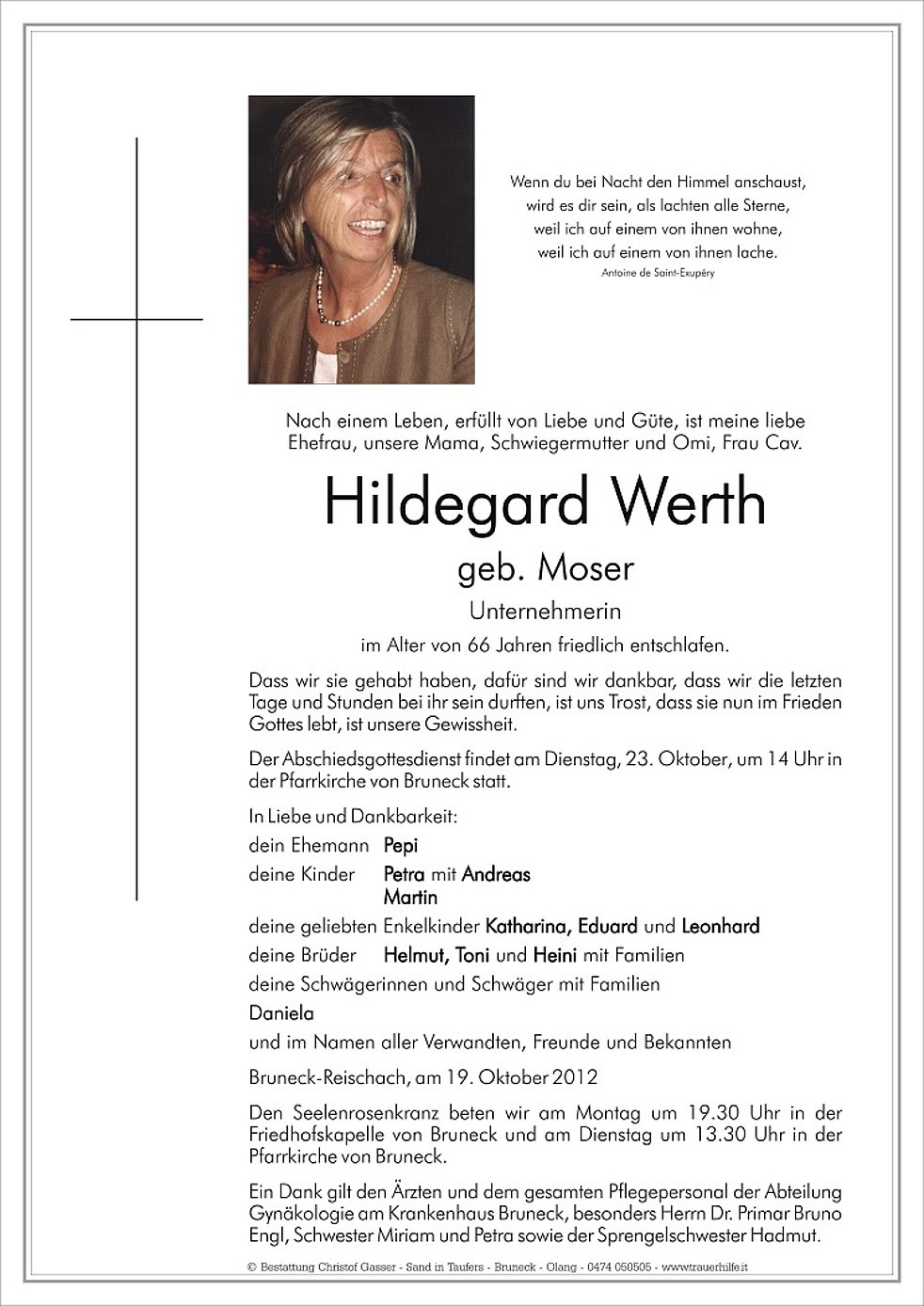 Nach einem Leben, erfüllt von Liebe und Güte, ist meine liebe Ehefrau, unsere Mama, Schwiegermutter und Omi, Frau Cav.
