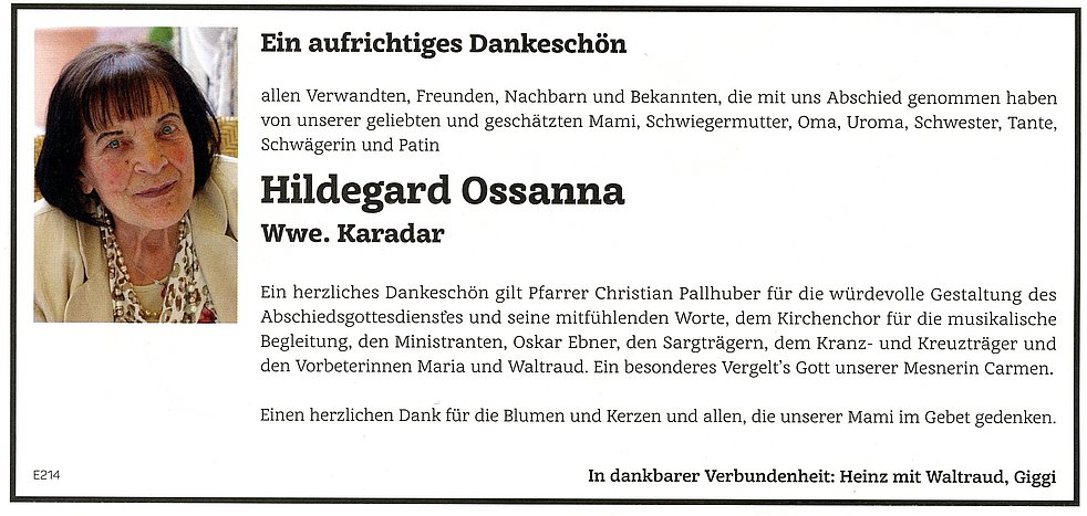 Allen, die an den Rosenkränzen und an der Beerdigung teilnehmen, im Voraus ein herzliches Vergelt´s Gott.