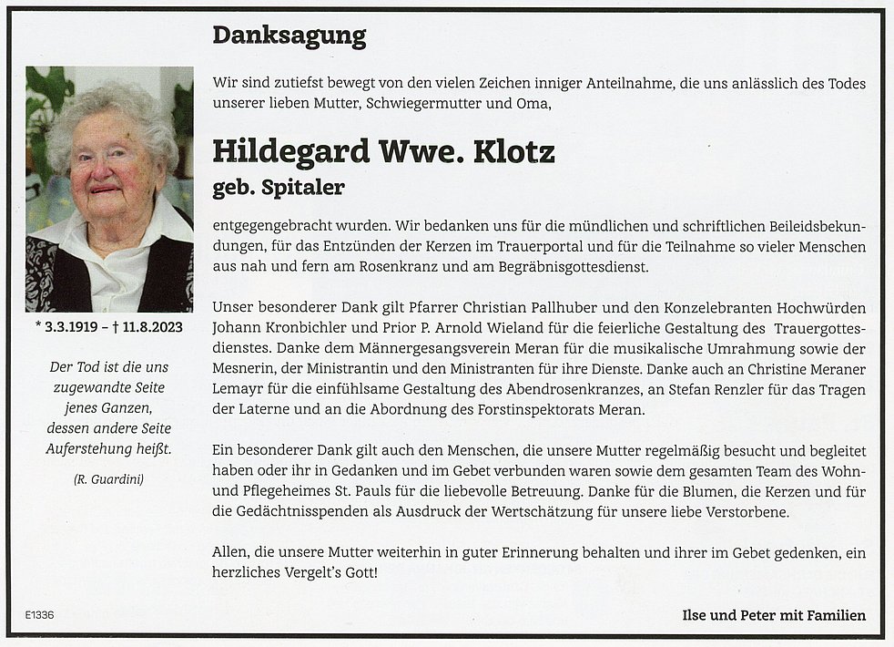 Hildegard Wwe. Klotz geb. Spitaler