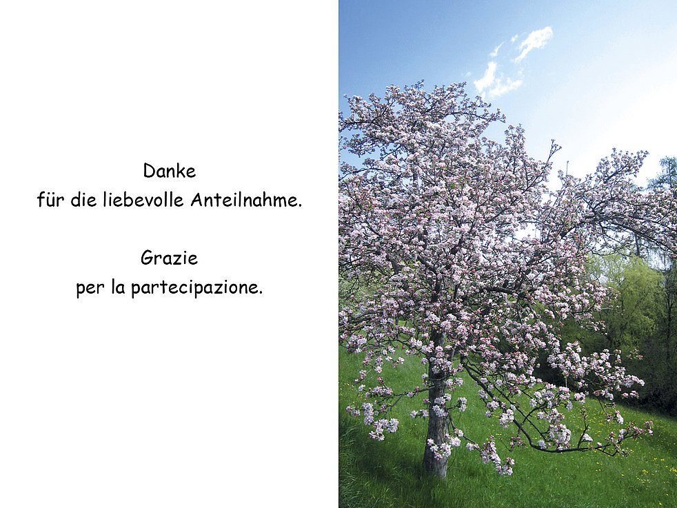 Anstatt Blumen auf das Grab zu legen, möge man für wohltätige Zwecke spenden.