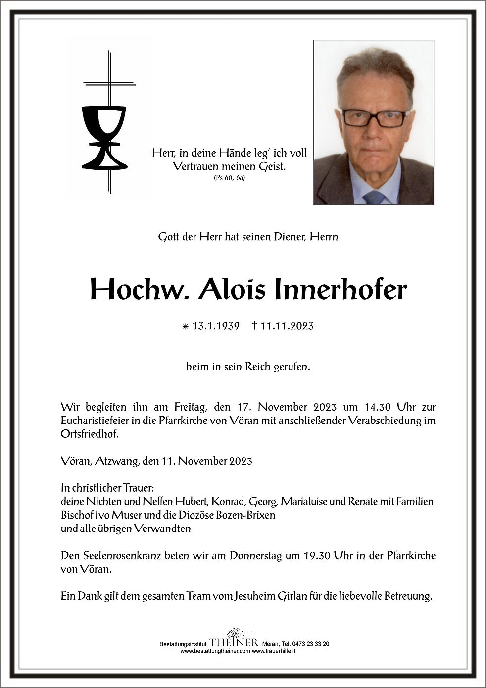 Wir begleiten ihn am Freitag, den 17. November 2023 um 14.30 Uhr zur Eucharistiefeier in die Pfarrkirche von Vöran mit anschließender Verabschiedung im Ortsfriedhof.