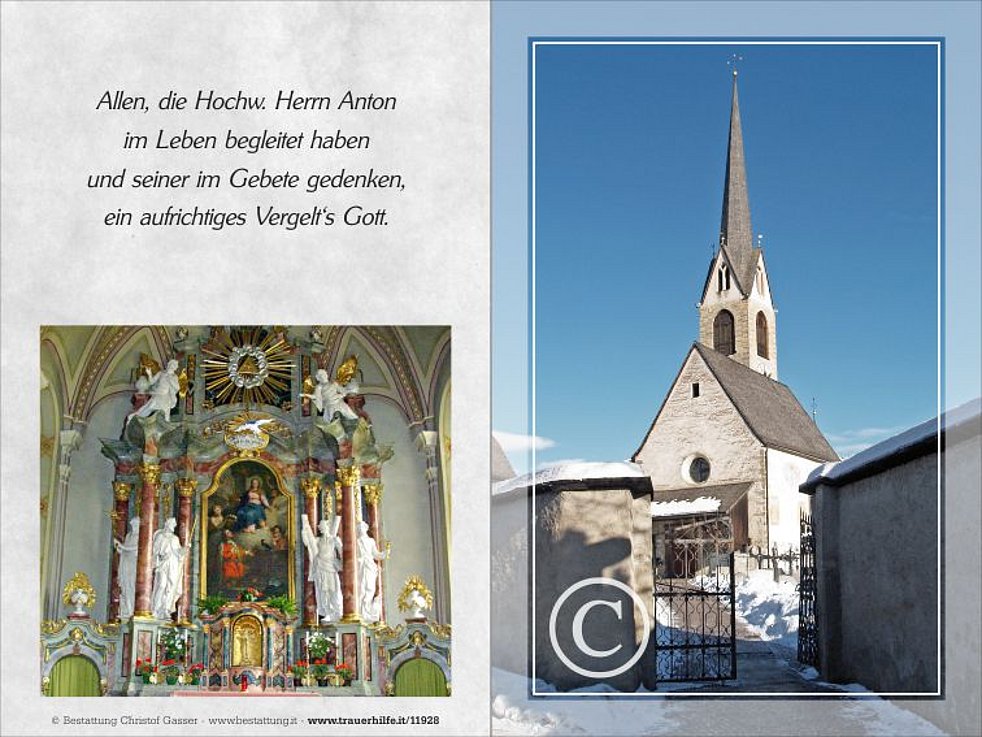 Anstelle von Blumen möge man für die Pfarrkirche von Stegen spenden.