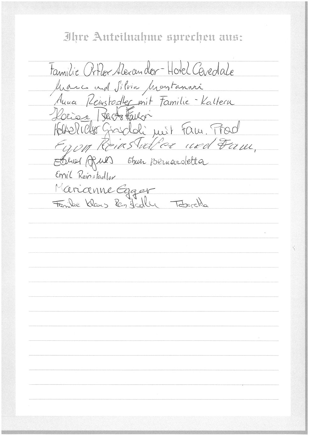 Am Samstag, 14. Oktober, um 10 Uhr feiern wir das Requiem in der Pfarrkirche von Sulden und anschließend begleiten wir den lieben Verstorbenen  auf den Friedhof.