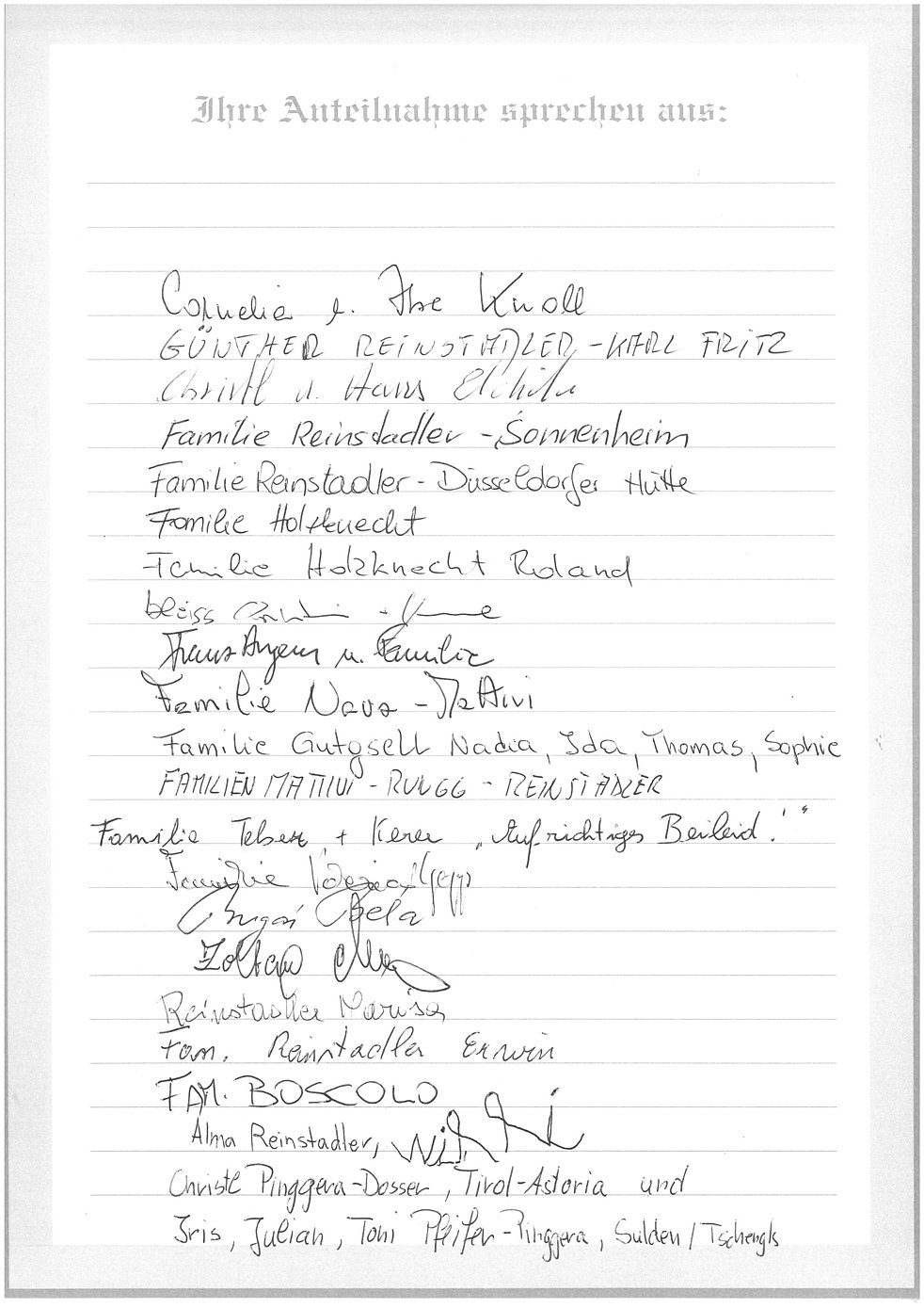 Ein herzliches Vergelt‘s Gott gilt Günther, Katharina, Ana, Gorica, seinen Hausärzten Herrn  Dr. Georg Hofer und Frau Dr. Raffaela Stocker und allen Helfer/innen für die einfühlsame, geduldige und liebevolle Pflege und Betreuung.