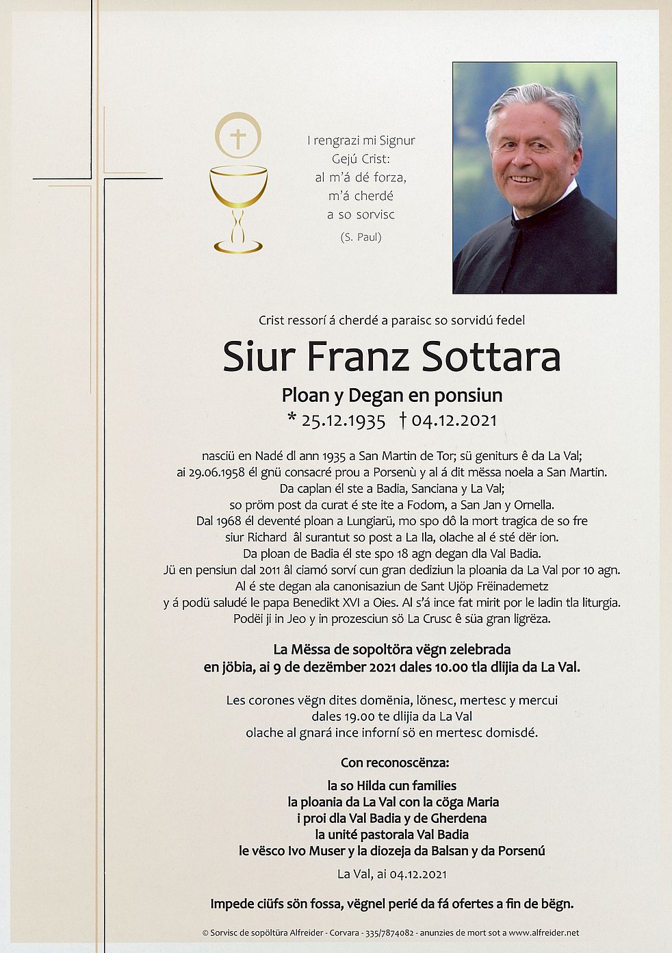 Auch um die ladinische Sprache in der Liturgie hat er sich verdient gemacht.