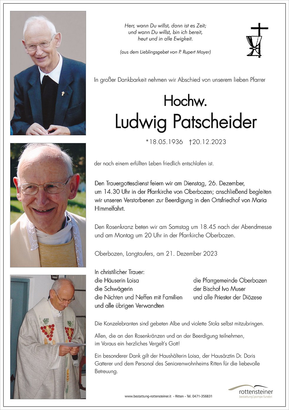 Begräbnisgottesdienst: 26.12. - 14:30 Uhr Pfarrkirche Oberbozen - Friedhof Maria Himmelfahrt
