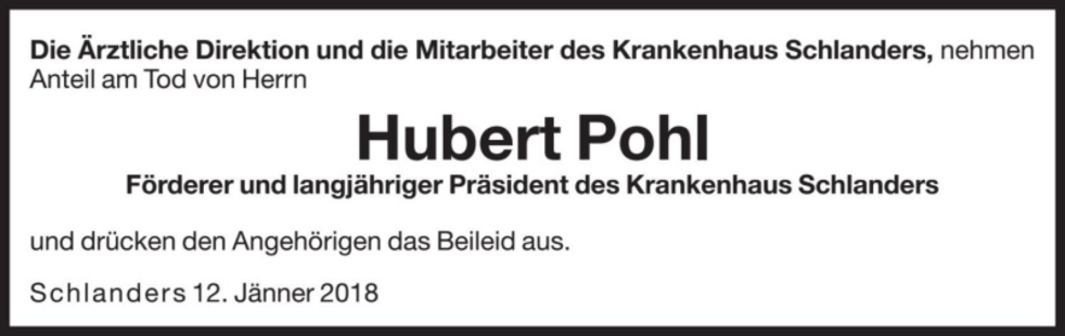 Unser größter Dank gilt den Ärzten und allen Mitarbeitern des Krankenhauses von Schlanders für die jahrelange, würde- und liebevolle Betreuung.