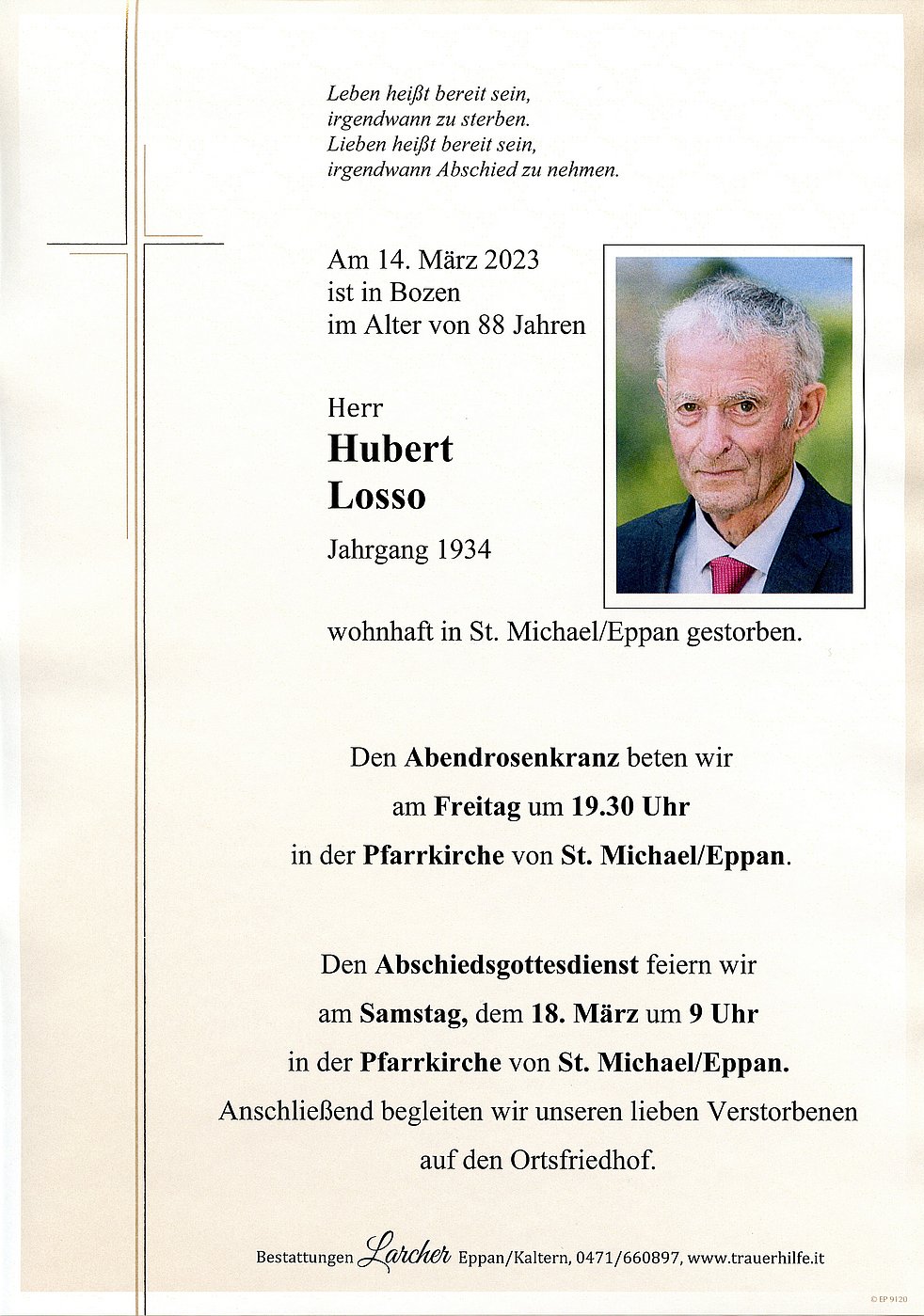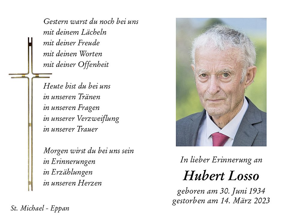 Den Abschiedsgottesdienst feiern wir am Samstag, dem 18. März um 9 Uhr in der Pfarrkirche von St. Michael/Eppan.