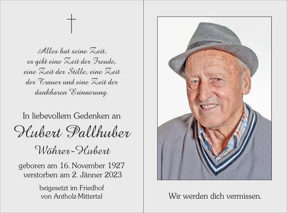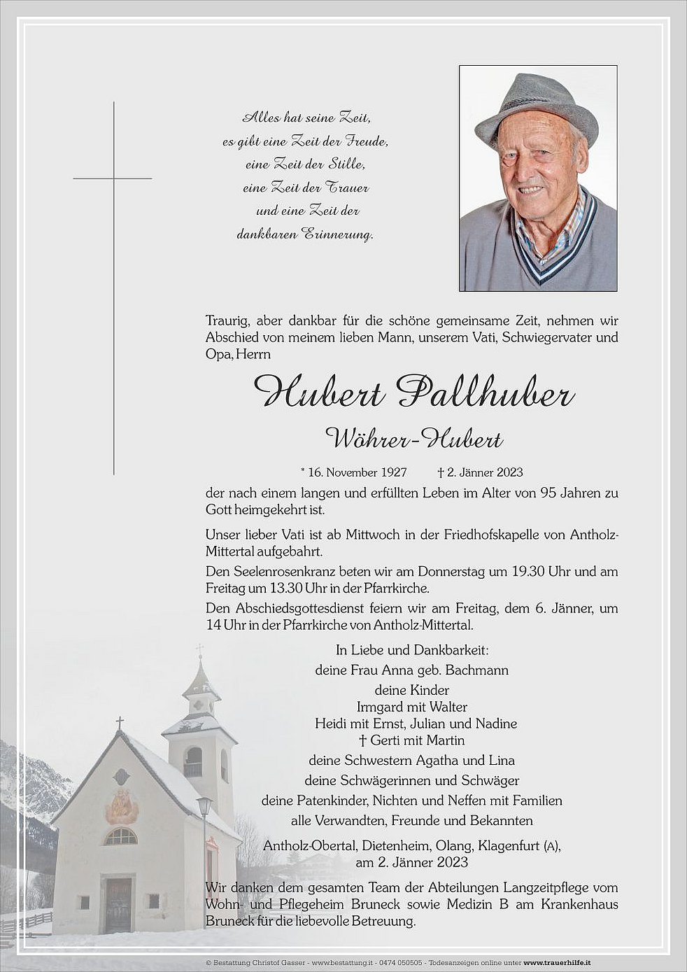 Unser lieber Vati ist ab Mittwoch in der Friedhofskapelle von Antholz-Mittertal aufgebahrt.