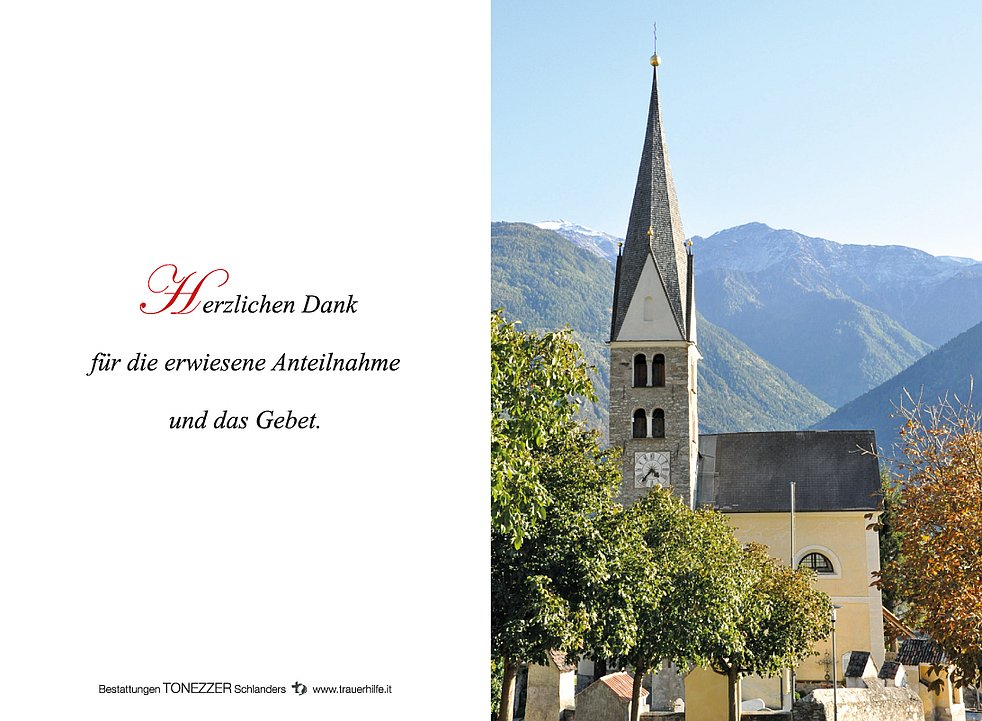 Ein besonderer Dank gilt Frau Magdalena vom Hauskrankenpflegedienst, den Ärzten und dem Pflegepersonal vom Krankenhaus Schlanders und ganz besonders Domenico für die tatkräftige Unterstützung.