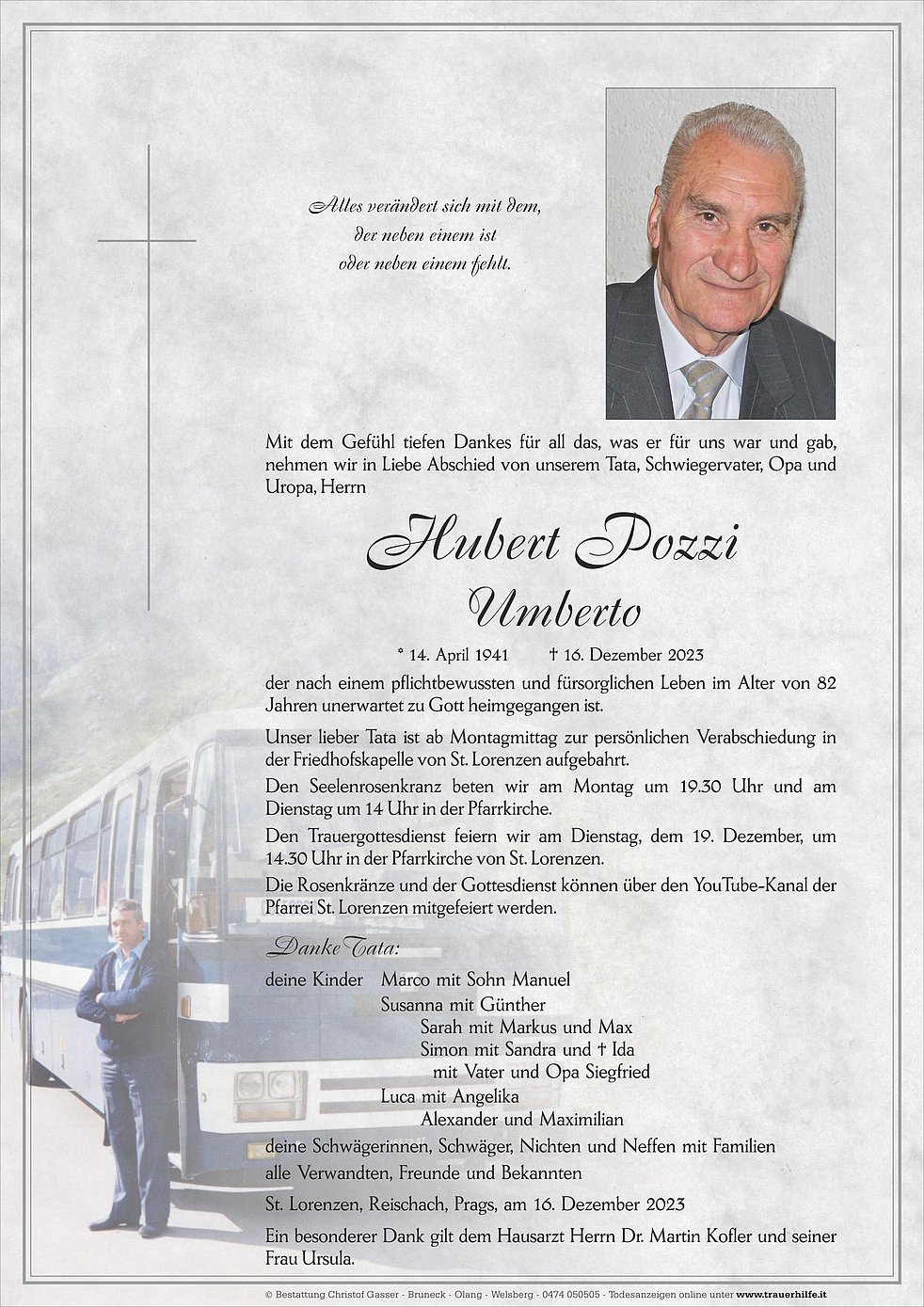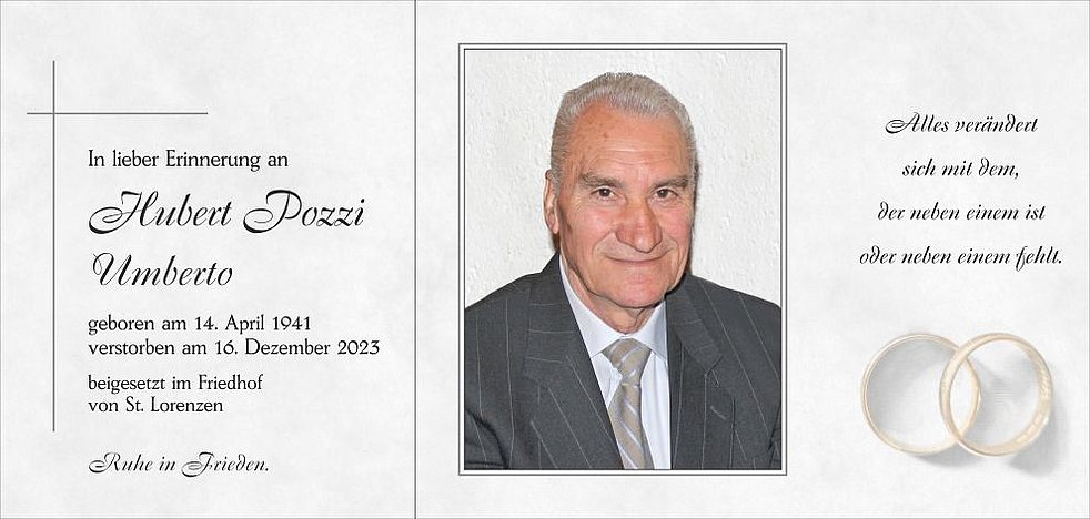 Liebe Familie Pozzi,lieber Marco ich möchte euch mein Beileid aussprechen für euren grossen Verlust.