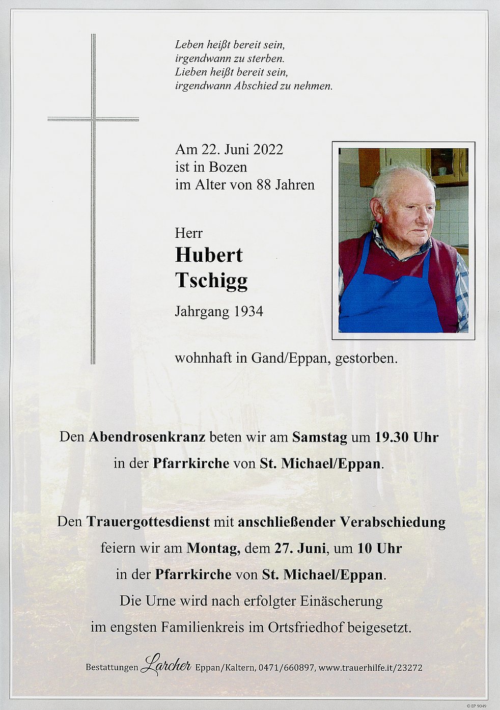 Den Trauergottesdienst mit anschließender Verabschiedung feiern wir am Montag, dem 27. Juni um 10 Uhr in der Pfarrkirche von St. Michael/Eppan.