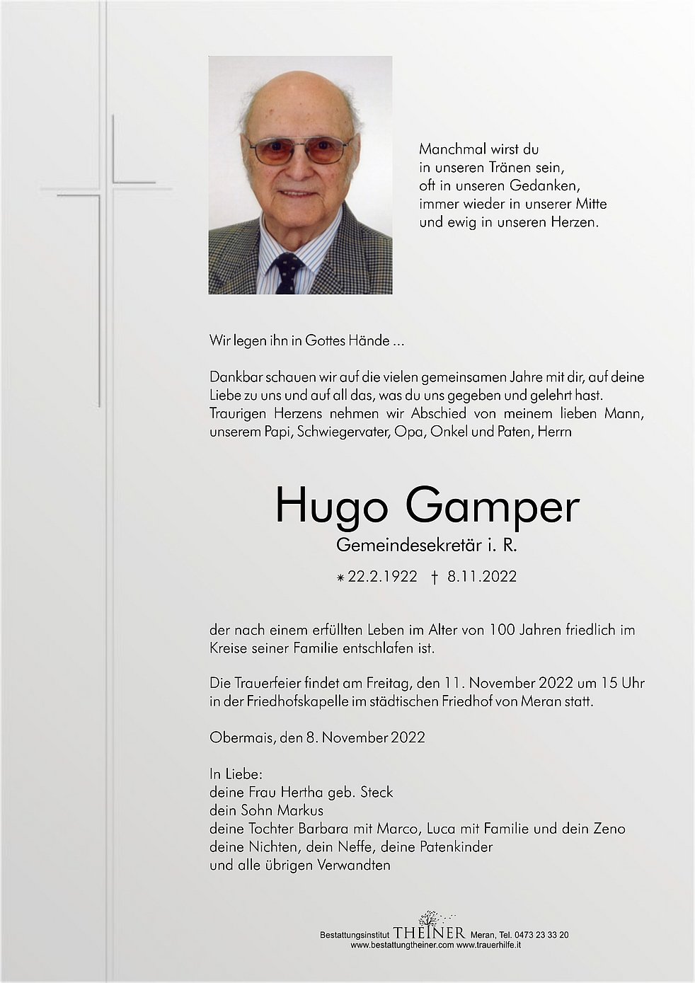 Die Trauerfeier findet am Freitag, den 11. November 2022 um 15 Uhr in der Friedhofskapelle im städtischen Friedhof von Meran statt.