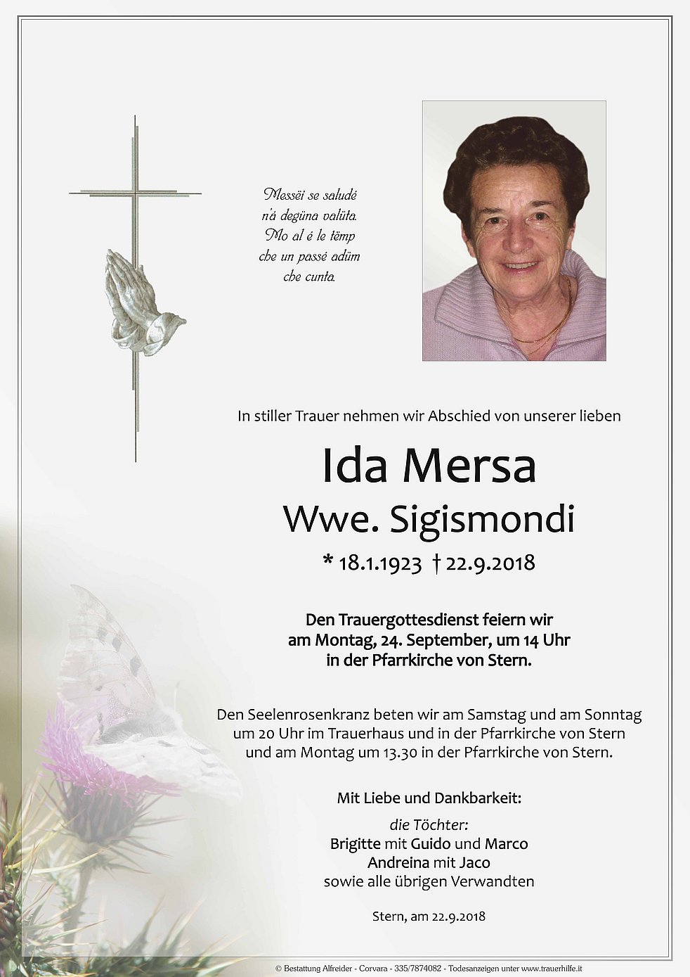 Den Trauergottesdienst feiern wir am Montag, 24. September, um 14 Uhr in der Pfarrkirche von Stern.
