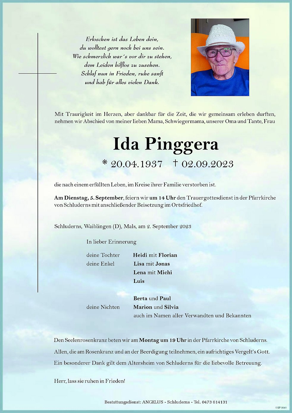 Wir wünschen dir zum Tode deiner Mutter unser aufrichtiges Beileid wir werden Ida in guter Erinnerung behalten und uns wird ihr Winken beim vorbeigehen fehlen Viel Kraft Christiane Karnutsch und Stephan