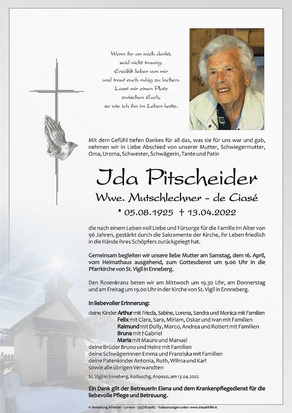 Mit dem Gefühl tiefen Dankes für all das, was sie für uns war und gab, nehmen wir in Liebe Abschied von unserer Mutter, Schwiegermutter, Oma, Uroma, Schwester, Schwägerin, Tante und Patin