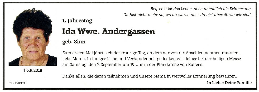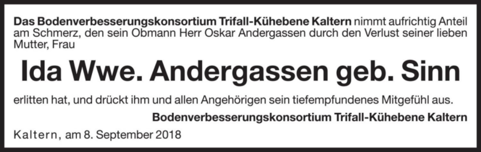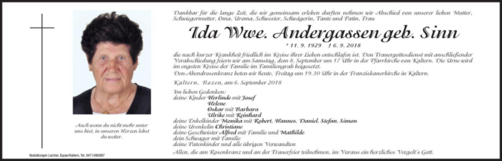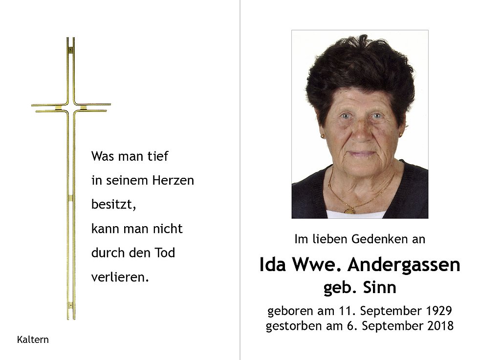 Ida Wwe. Andergassen geb. Sinn