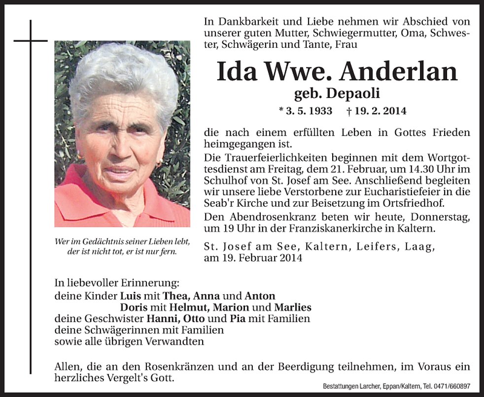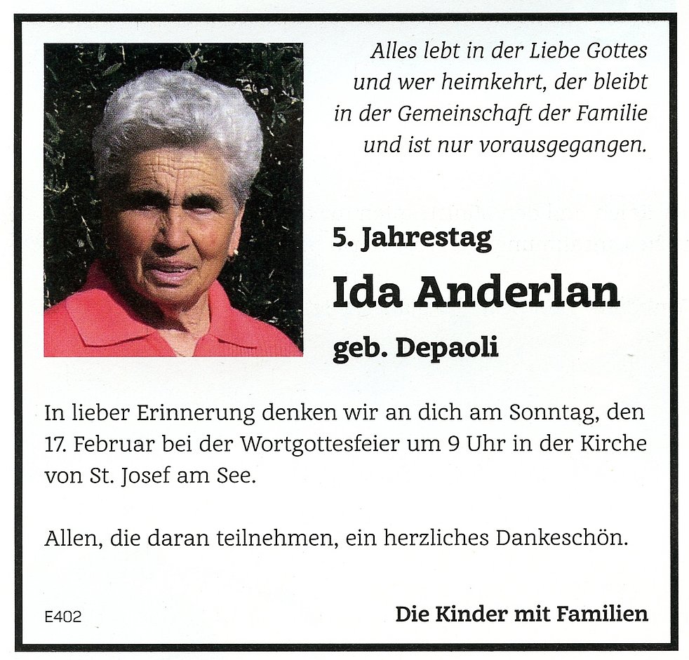 Ida Wwe. Anderlan geb. Depaoli