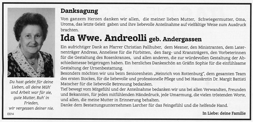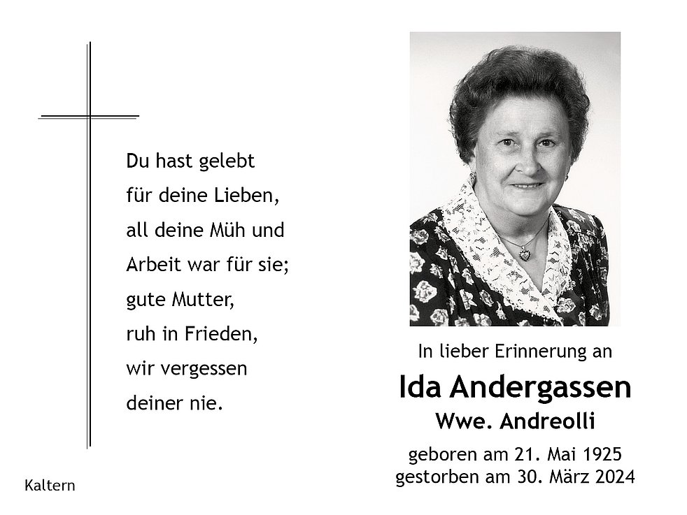 Ida Wwe. Andreolli geb. Andergassen