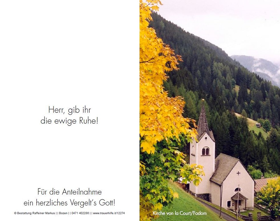 Den Trauergottesdienst feiern wir am Freitag, dem 13. April, um 14 Uhr im Dom von Bozen. Anschließend um 15.30 Uhr erfolgt die Beisetzung im Soldatenfriedhof von St. Jakob.