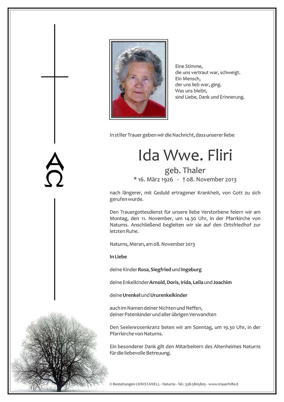 Den Trauergottesdienst für unsere liebe Verstorbene feiern wir am Montag,