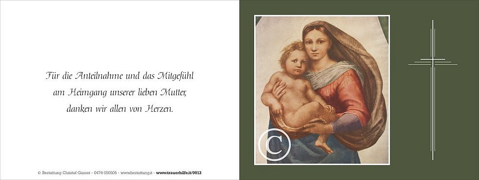 Vergelt’s Gott allen, die an den Seelenrosenkränzen und an der Beerdigung von unserer lieben Mutter teilnehmen und sie in liebevoller Erinnerung behalten.
