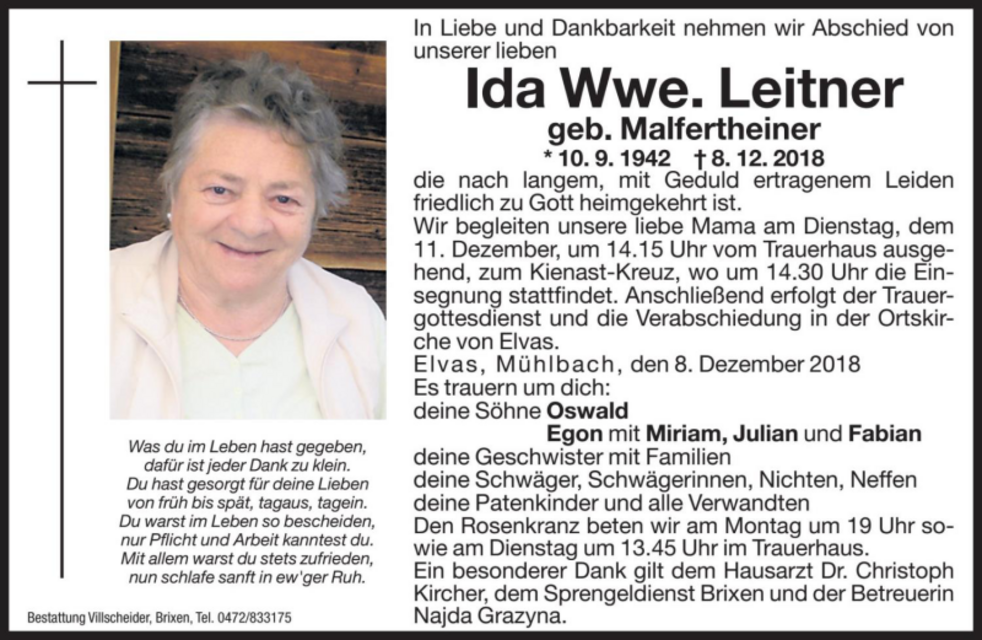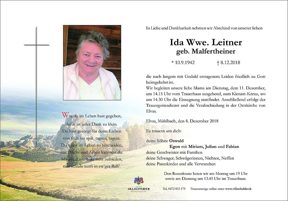 Begräbnisgottesdienst: 11.12. - 14:30 Uhr Elvas