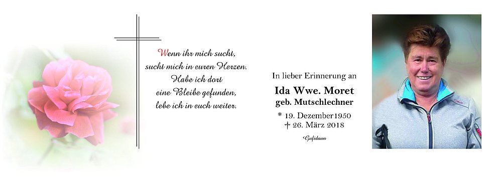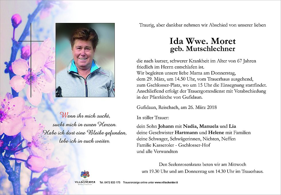 zum Gschlosser-Platz, wo um 15 Uhr die Einsegnung stattfindet. Anschließend erfolgt der Trauergottesdienst mit Verabschiedung in der Pfarrkirche von Gufidaun.