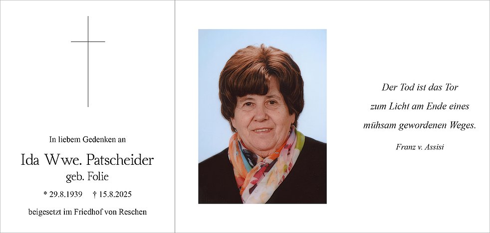 im Namen der Schulgemeinschaft des Oberschulzentrums Mals und auch persönlich: Herzliches Beileid zum Heimgang der Mutter und viel Kraft, Zuversicht und Gottvertrauen in der Zeit des Abschiedes.
