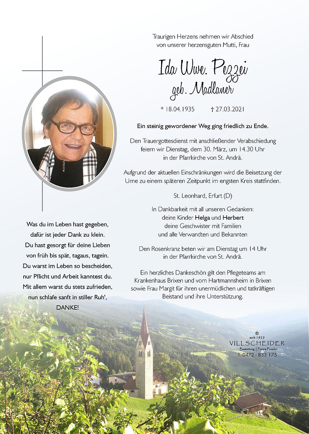 Liebe Helga.Wir alle trauern mit dir um deine Mutter. Wir wünschen dir viel Kraft in dieser schweren Zeit