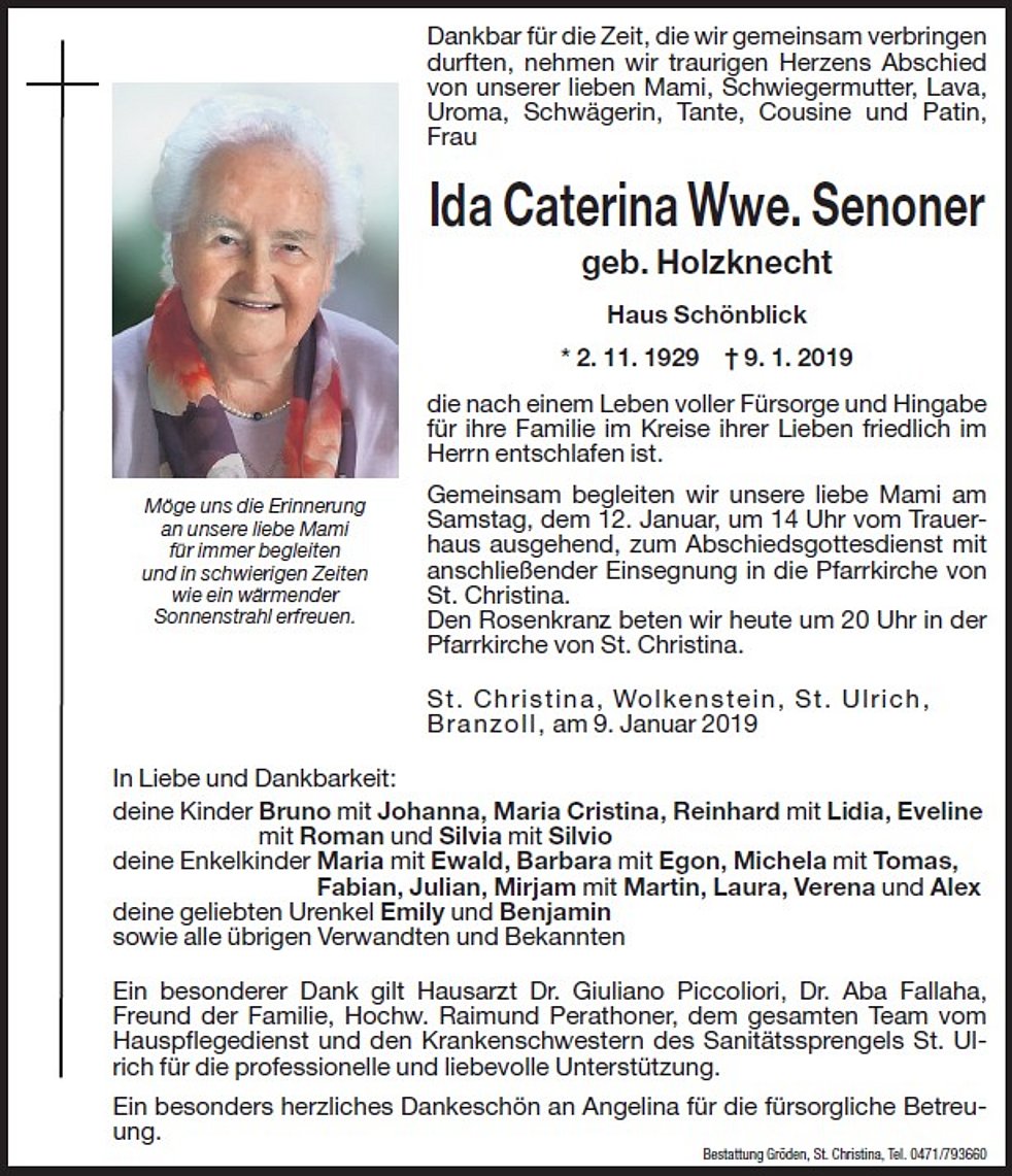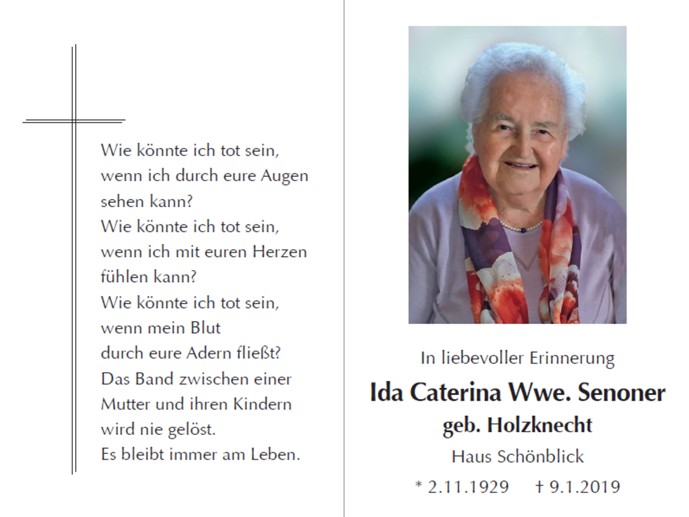 Ida Caterina Wwe. Senoner geb. Holzknecht