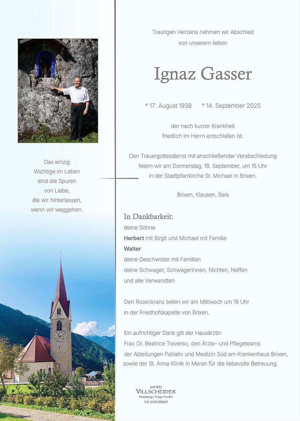Trauerfeier: 18.09. - 15:00 Uhr Brixen | Bressanone