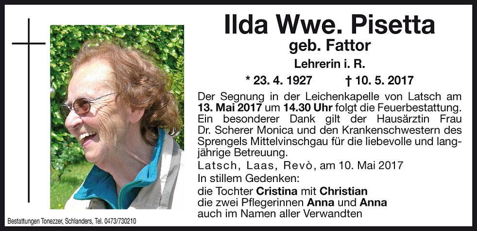 Ilda Wwe. Pisetta geb. Fattor