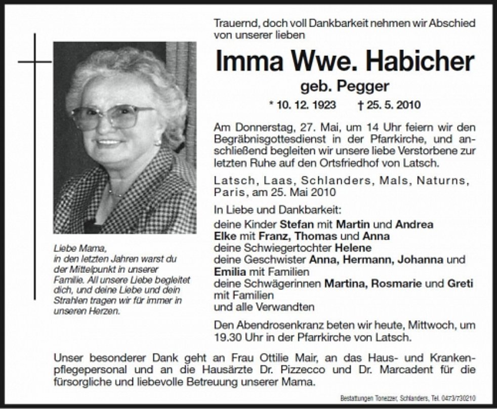 Am Donnerstag, 27. Mai, um 14 Uhr feiern wir den Begräbnisgottesdienst in der Pfarrkirche und anschließend begleiten wir unsere liebe Verstorbene zur letzten Ruhe auf den Ortsfriedhof von Latsch.