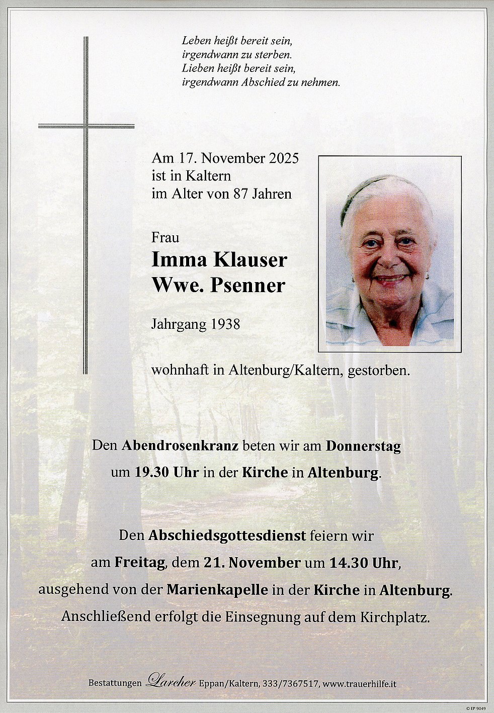 Nach einem mit viel Liebe und Arbeit erfüllten Leben ist sie friedlich im Kreise ihrer Lieben entschlafen. In unendlicher Dankbarkeit nehmen wir Abschied von unserer lieben Mama, Schwiegermama, Oma, Schwester, Schwägerin, Tante und Patin