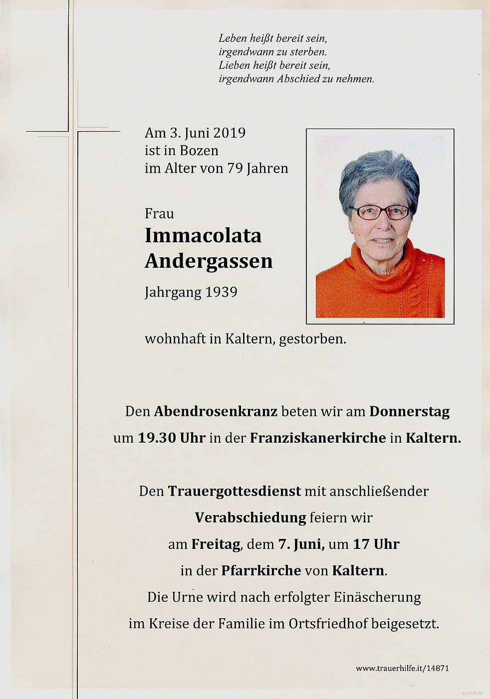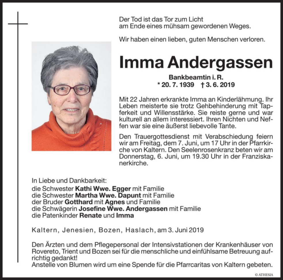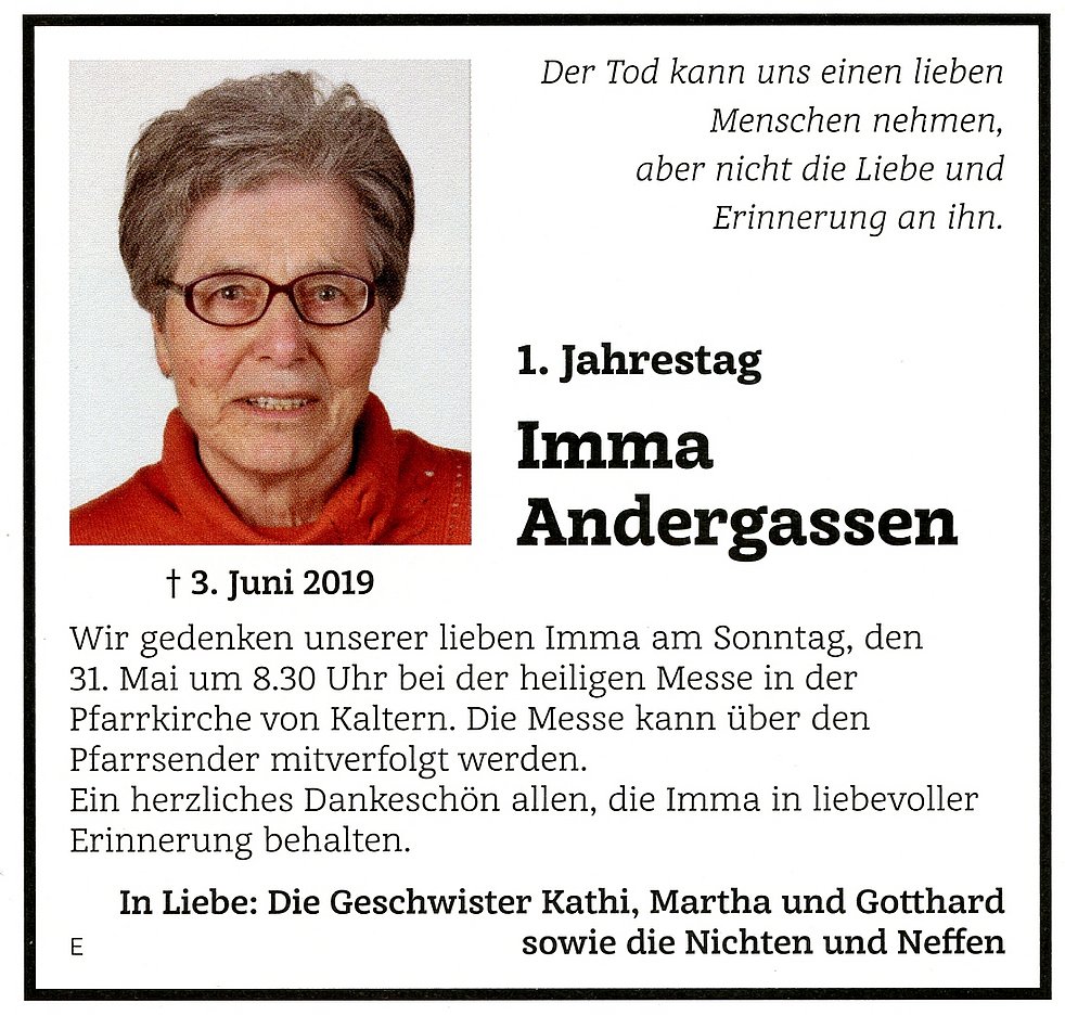 Liebe Imma, du warst mir eine liebe Arbeitskollegin, ruhe in Frieden