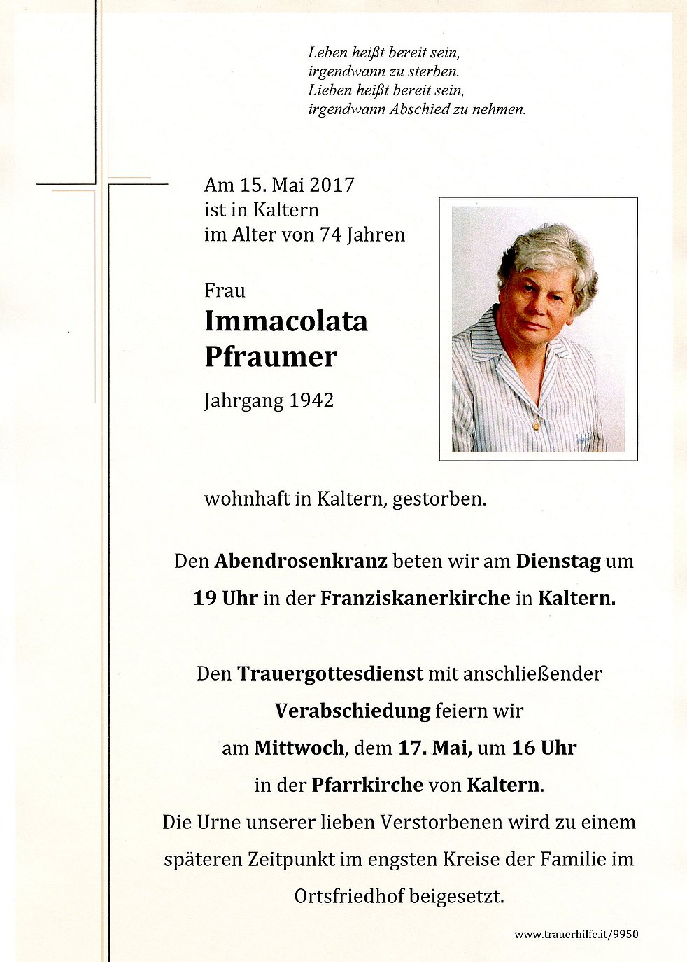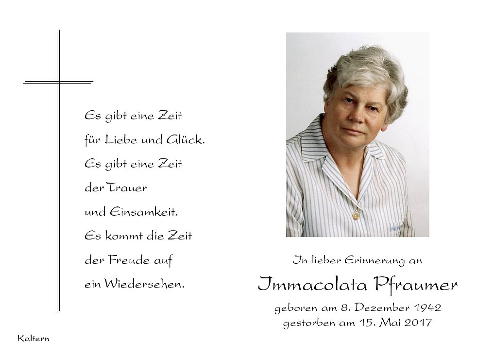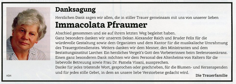 Trauerfeier: 17.05. - 16:00 Uhr Pfarrkirche Kaltern