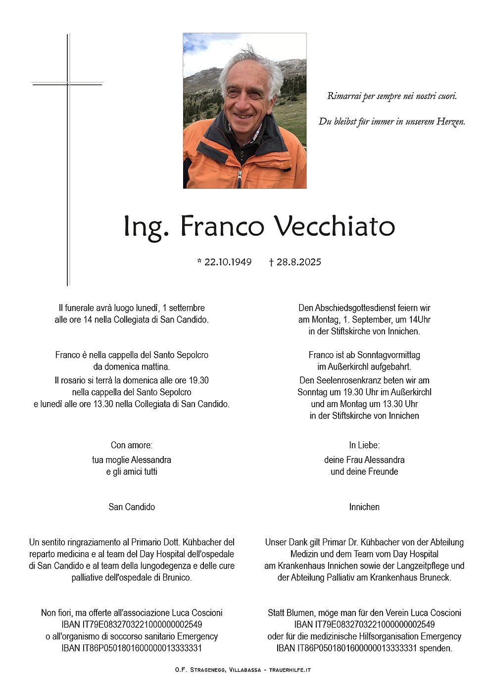 Trauerfeier: 01.09. - 14:00 Uhr Innichen