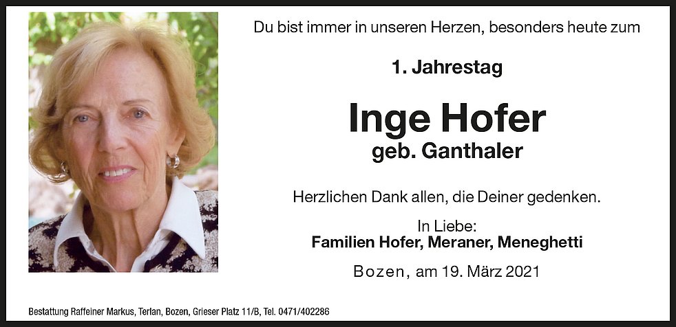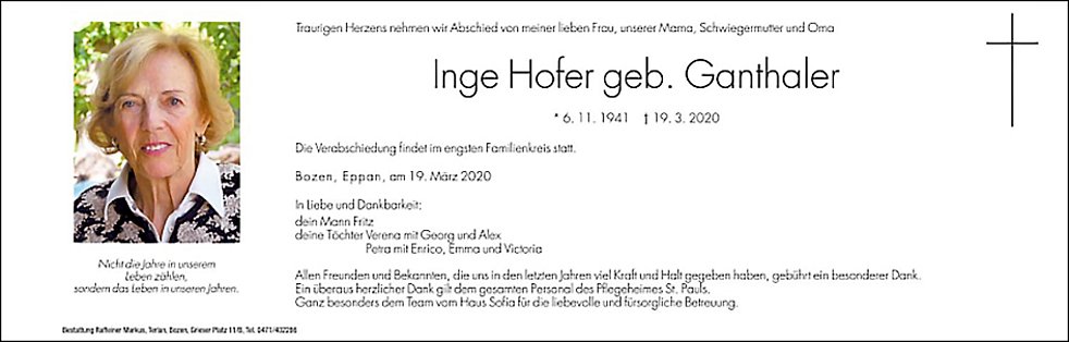 Ein überaus herzlicher Dank gilt dem gesamten Personal des Pflegeheimes St. Pauls.