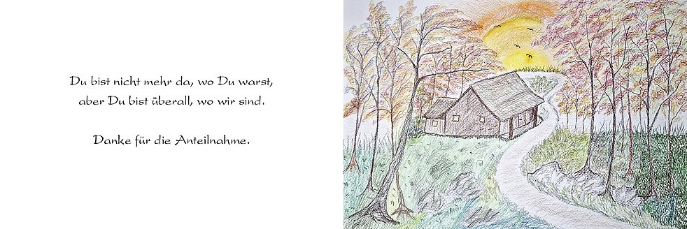 Ein herzliches Dankeschön deinem lieben Schwager Erwin für seinen Beistand und ärztlichen Rat und all jenen, die dir in dieser schweren Zeit nahe waren und dich begleitet haben.