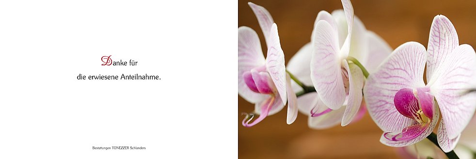 Ein besonderer Dank gilt der Abteilung Chirurgie III des Krankenhauses von Meran, dem Hausarzt Dr. Robert Kaserer, dem Hauskrankenpflegedienst des Sprengels Mittelvinschgau, dem gesamten Team des Palliativzentrums Martinsbrunn sowie Sr. Paula für die liebevolle Betreuung.